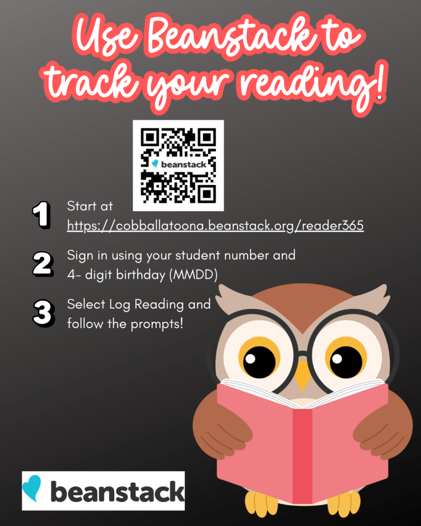 Bucs, don’t forget to log your reading in Beanstack, and be on the lookout for school-wide reading challenges throughout the year!